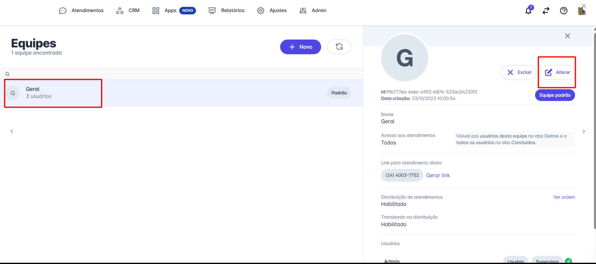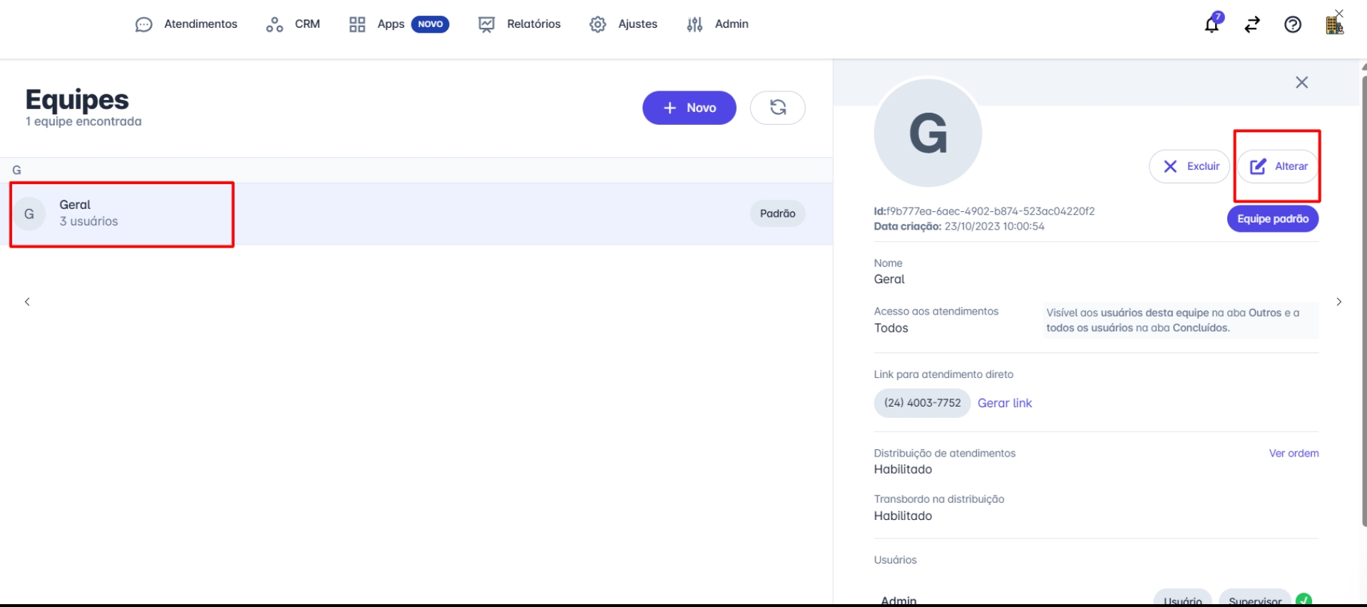 O atendimento ficará visível apenas para os usuários da equipe responsável.
