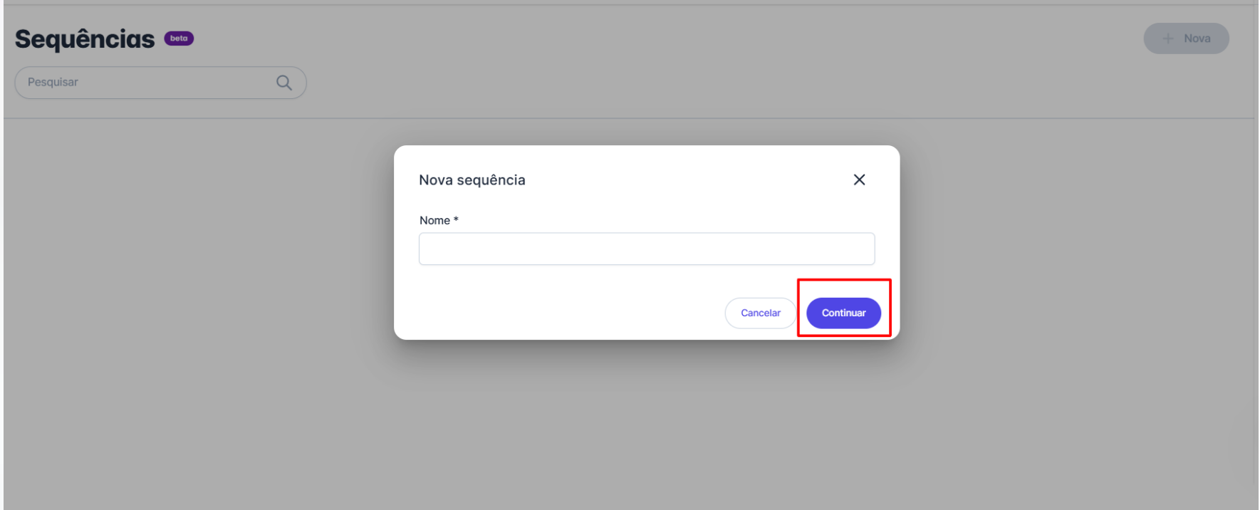 Passo 3: Um formulário será aberto para que você adicione o nome da sequência. Insira o nome desejado e clique no botão "Continuar".