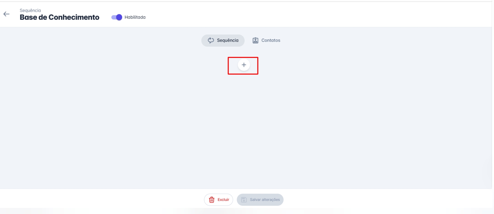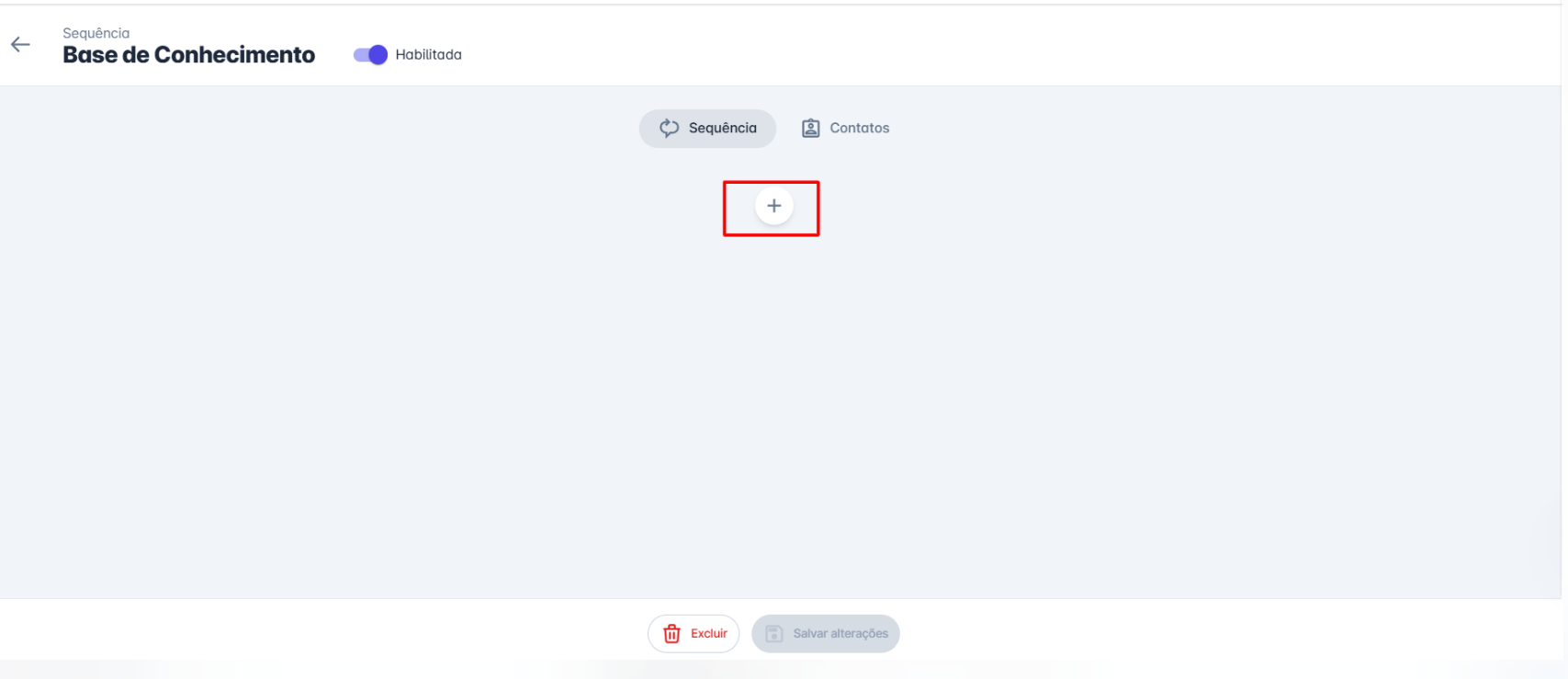 Passo 4: Você será direcionado para a página de configuração da sequência. Clique no botão "+" para adicionar um novo passo à sequência.