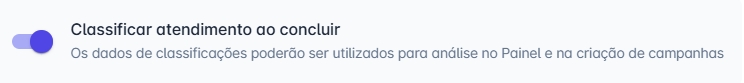 Você pode ativar a opção de classificar o atendimento ao concluir. Para isso, basta habilitar a chave correspondente.