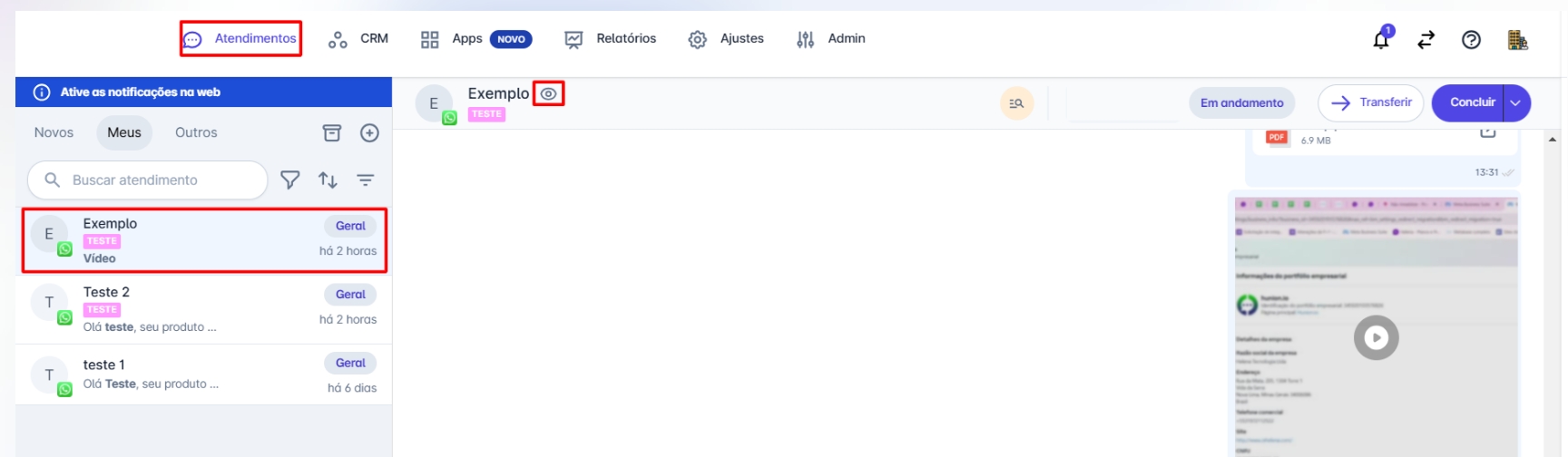 Passo 1: Na tela inicial, clique no menu CRM, em seguida clique em Contatos.