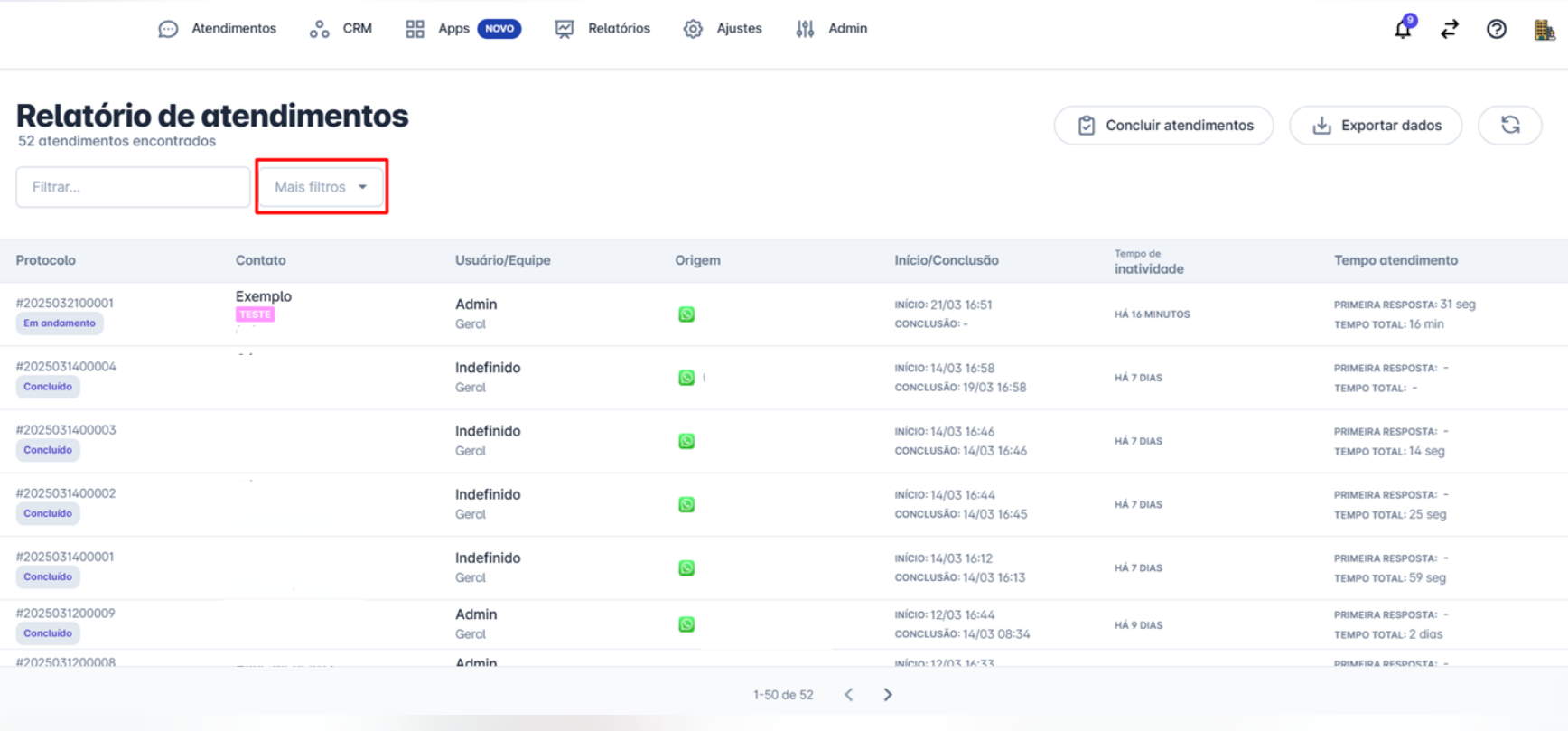 Use filtros para segmentar os atendimentos