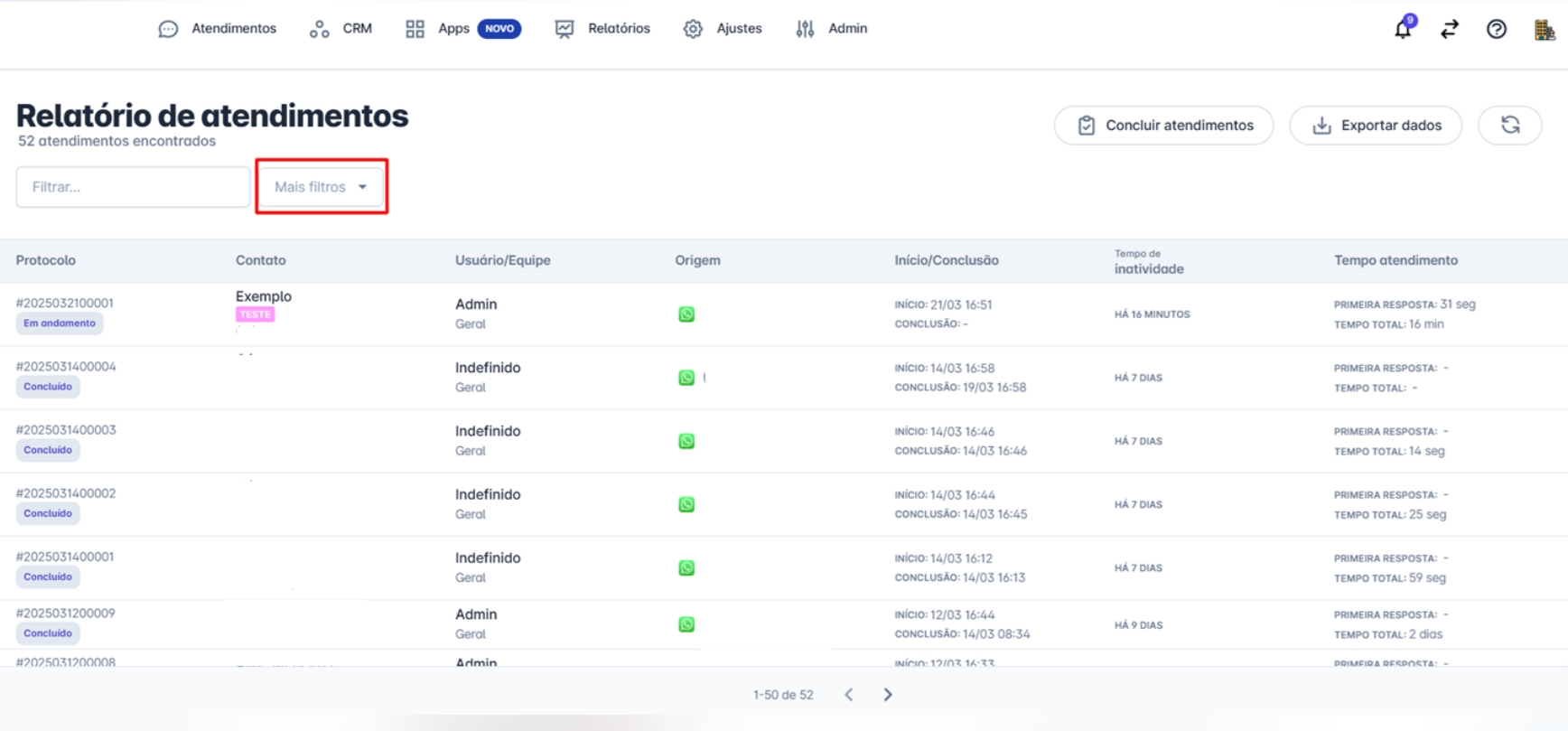 Utilize critérios como status, tipo de solicitação ou responsável para garantir que apenas os atendimentos corretos sejam finalizados.